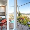 The accommodation comprises a bright double bedroom, a modern bathroom with shower, a functional living area with a fully equipped kitchenette, and a balcony with panoramic views of the city and surrounding hills—the perfect spot for an al fresco breakfast or a sunset aperitif.